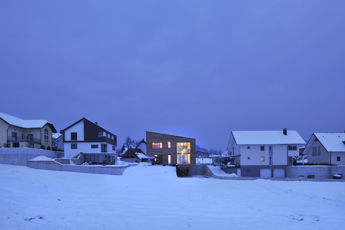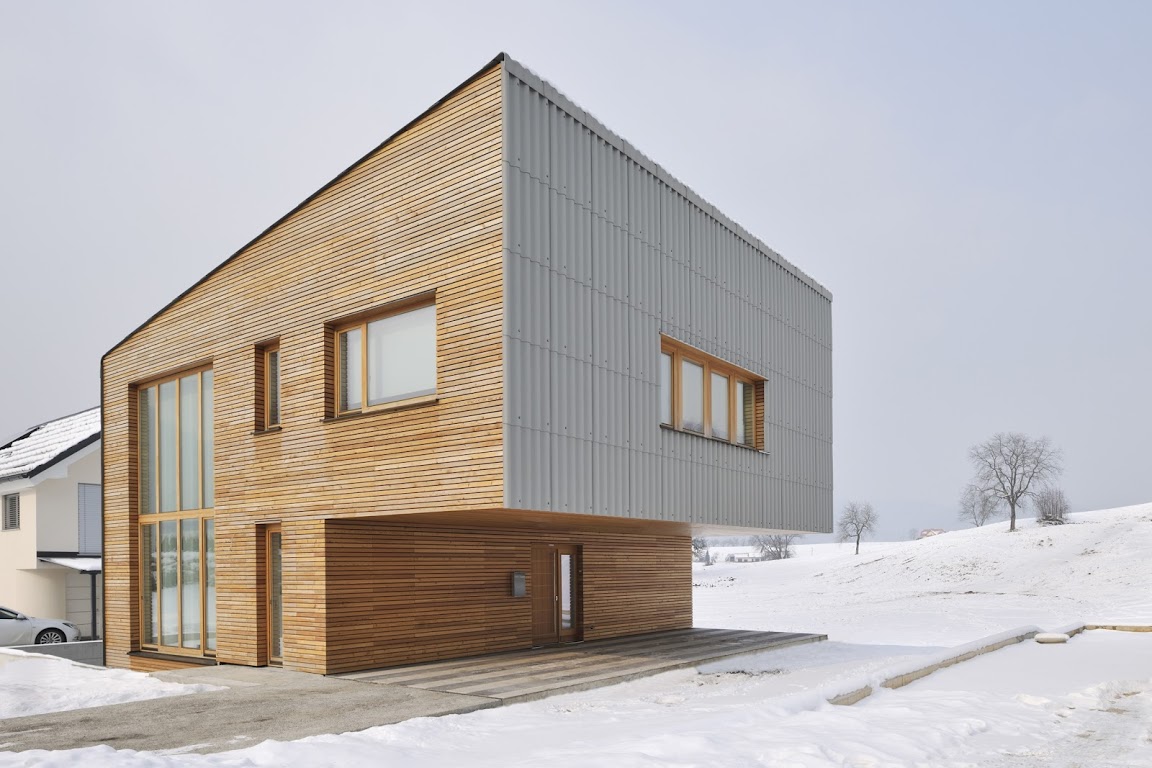U brdivitom mestašcetu Škofja Loka severno od Ljubljane, napravljena je kuća koja se savršeno uklapa u ambijent. Kuća, koja je oslonjena na svega 33 kvadratna metra parcele (od ukupno 514m2), prostire se na površini od čak 185 kvadrata. U podrumu se nalazi radionica, na open-space prizemlju smeštena je dnevna soba, trpezarija i kuhinja dok su na konzolnom spratu našle mesto spavaće sobe.