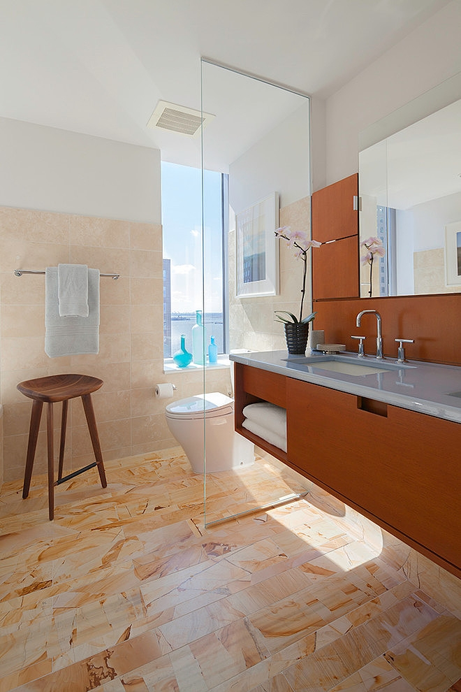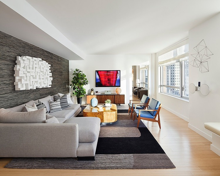 Projekat ovog luksuznog dvoetažnog stana u Battery Park Cityju potpisuje studio Willey Design. Ideja je bila da se napravi što komforniji i jednostavniji prostor a da se efektnim detaljima unese dinamika.