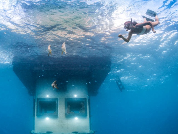 I tokom noći je pogled kroz prozor jedinstven jer se uveče oko potopljene sobe pale reflektori koji privlače najegzotičnije vrsta riba.
