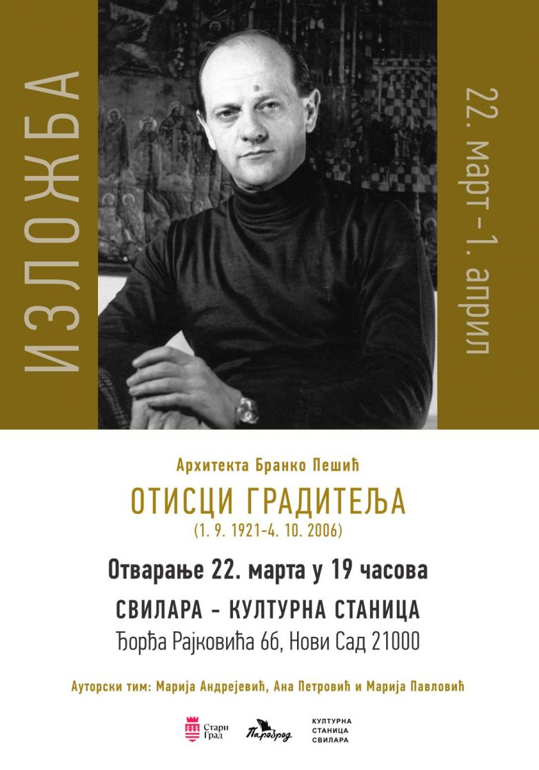 U utorak, 22. marta, od 19 sati, u Kulturnoj stanici Svilara u Novom Sadu biće otvorena izložba „Otisci graditelja“ posvećena arhitekti Branku Pešiću (1926–2006), koju potpisuje autorski tim u sastavu Marija Andrejević, Ana Petrović i Marija Pavlović.