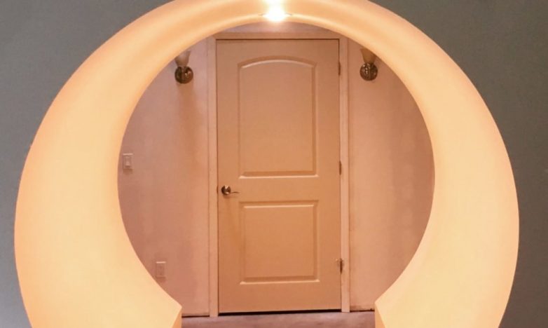 Standardi pasivne gradnje ne dozvoljavaju kružna ulazna vrata. Zato je oko pravougaonog otvora napravljen kružni crveni okvir.