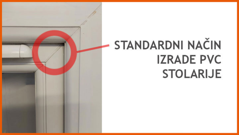 Bešavni način izrade stolarije predstavlja novu – naprednu tehniku spajanja PVC profila a da se ne upotrebljavaju tradicionalne fuge i vidljivi spojevi. Zavareni spojevi na tradicionalan način često ostavljaju nepravilnosti koje mogu narušiti estetiku prozora i vrata kao što vidite na slici ispod.