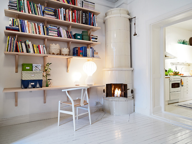 Vlasniku je u stanu bio neophodan deo za rad. Police sa nosačima je iskoristio za pravljenje biblioteke. Jednostavan i lep stan, bez suvišnih detalja, zar ne?