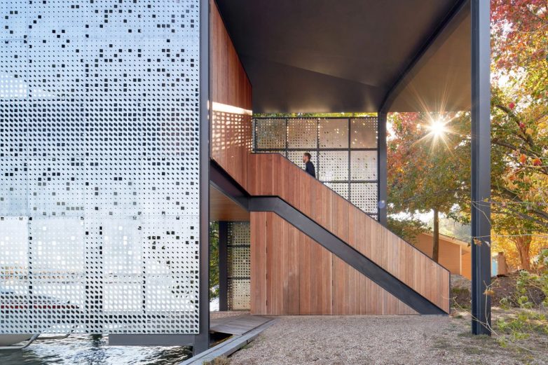 Kuća na vodi za čamce i relaksaciju od laserski perforiranih panela