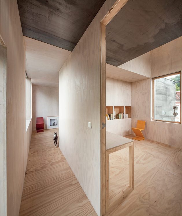 Unutrašnjost kućice, koja je u potpunosti izvedena u drvetu, osvetljena je zahvaljujući velikim prozorima. Enterijer je sveden kako bi bilo što više prostora za igru. Čak je i krevet izdignut na metalnu galeriju kako bi se i prostor ispod njega iskoristio.