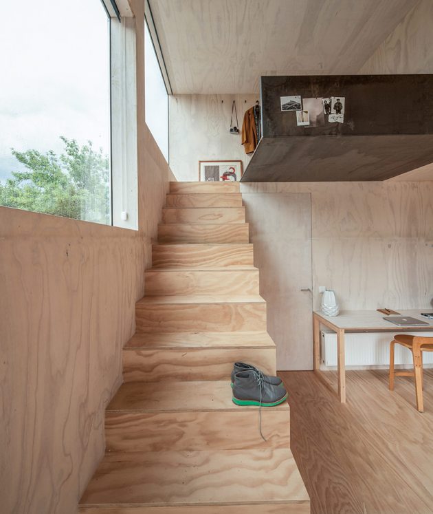 Kućica je osmišljena kao u potpunosti funkcionalna stambena jedinica za dvanaestogodišnjeg dečaka, u koju se ulazi sa krova porodične kuće.