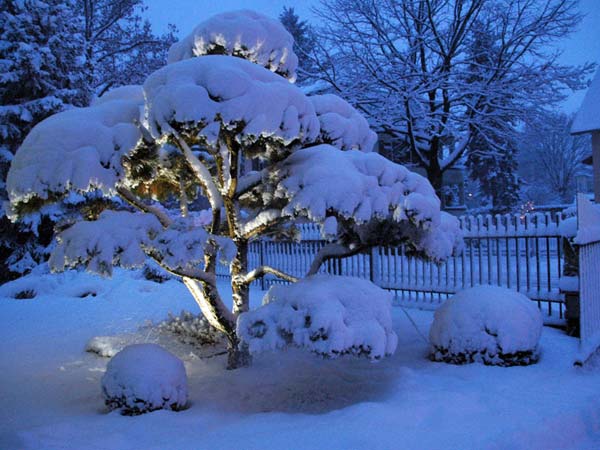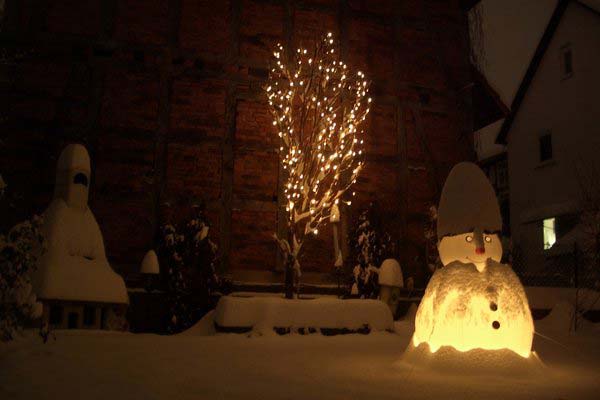 4. Osvetljenje. Snežni prekrivač sam dizajnira prostor koji možete naglasiti baštenskim osvetljenjem.