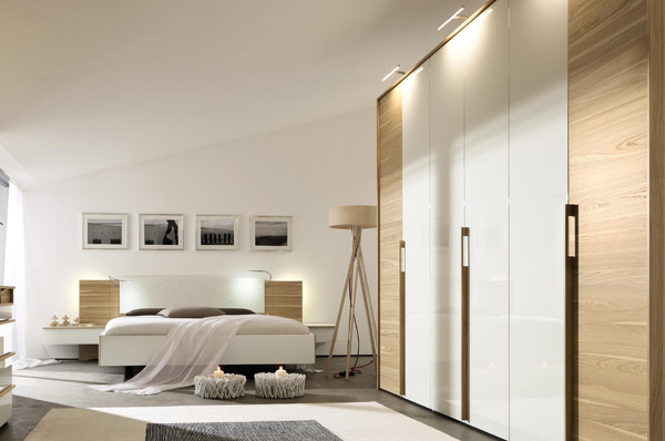 Umesto stakla na pojedinim modelima Husltinih spavaćih soba se pojavljuje bojeno drvo u visokom sjaju. Bela boja se vrlo dobro uklapa sa teksturom drveta.
