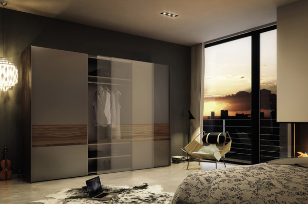 Frontove ormana od furniranog drveta u kombinaciji sa bojenim staklom predlaže čuveni proizvođač nameštaja Hulsta.