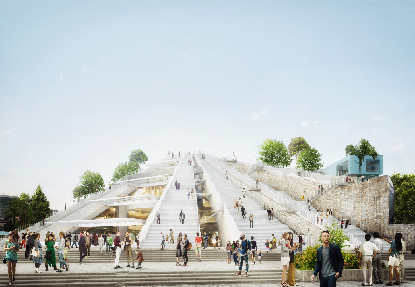 Raznovrsna topografija ispod krošnje nalik na šumu definiše centralni zajednički prostor. Samonoseća staklena fasada visoka 16 metara obezbeđuje transparentnost, dok skulpturalni stubovi sadrže distributivni tehnološki sistem koji kontroliše unutrašnju klimu, osvetljenje i akustičnu udobnost. Planirano je da projekat bude završen početkom 2023. godine.