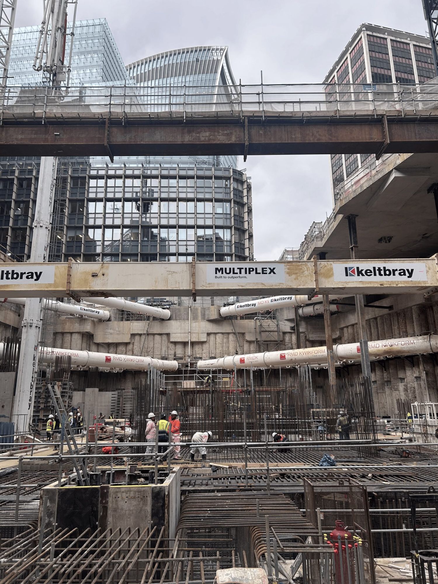Da bi se omogućila gradnja podzemnih nivoa, inženjeri iz Arupa razvili su sistem u kome polovina podruma praktično nastaje ispod već podignutog tornja. Konstrukcija je oslonjena na čelične podupirače visoke 14 metara, dok se ispod njih postavlja armiranobetonski skelet nove zgrade.
