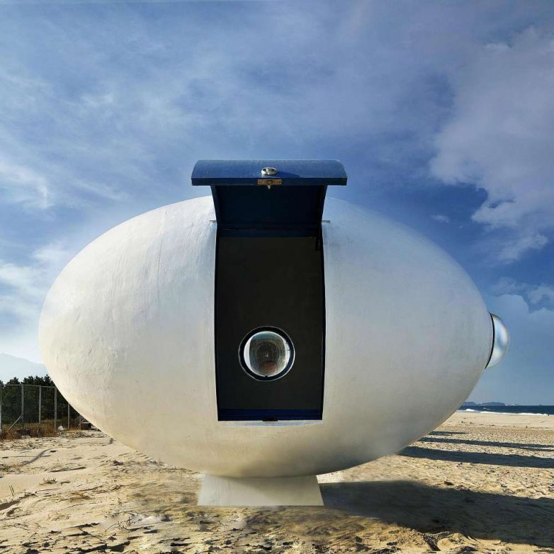 Ova mini vikendica u obliku jajeta napravljena je od polistirena tako da je njena težina mala, te se ovi objekti predviđeni za plaže, lagano mogu premeštati sa jedne na drugu.