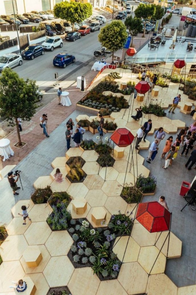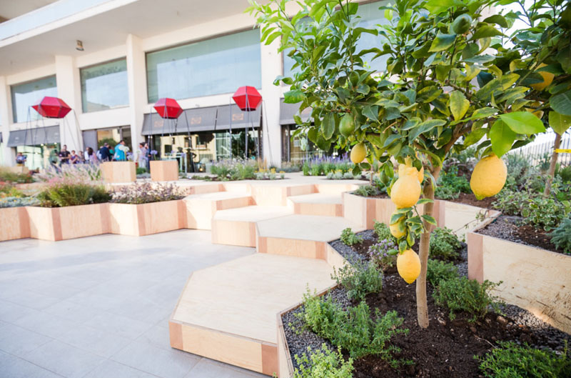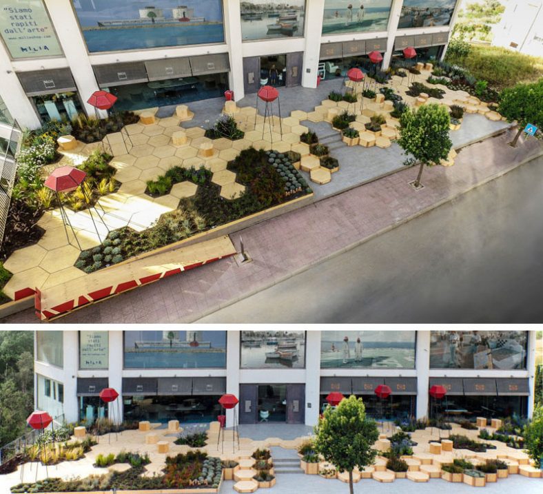 S namerom da se kreira prijatan gradski prostor koji bi privukao ljude, park Zighizaghi sadrži dosta drvenih heksagonalnih ploča koje formiraju male vrtove u kojima su zasađene mediteranske biljke poput lavande i limuna, piše Contemporist.