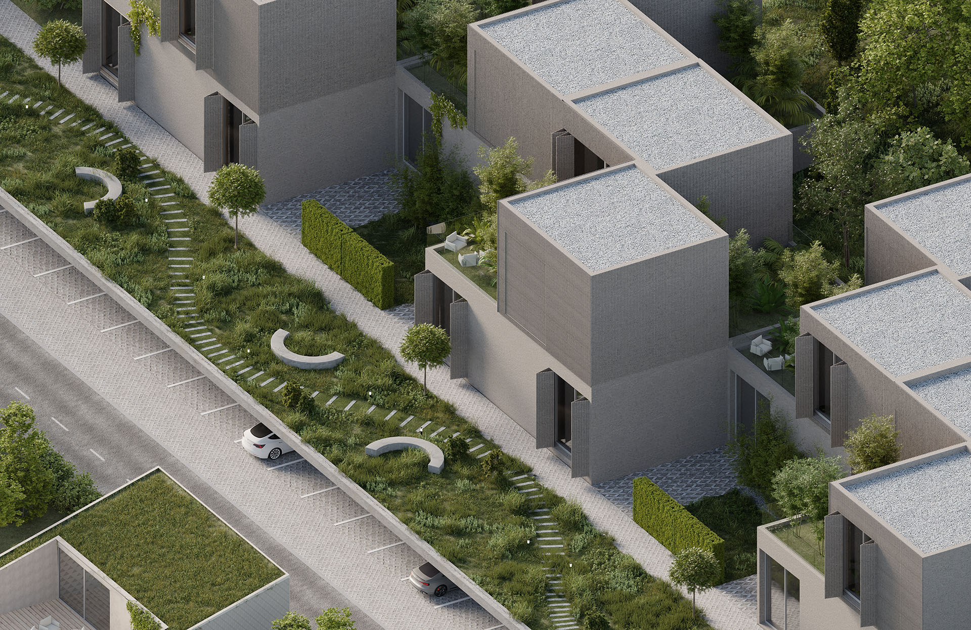 Uređenje parcela prepušteno je vlasnicima objekata u naselju; Vizuelizacija: Albatross