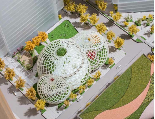 Procenjuje se da će za izgradnju projekta biti neophodno šest godina, a samo sedište prostiraće se na više od 300.000 kvadratnih metara. Staklene kupole biće prečnika 30 metara i omogućavaće akumuliranje energije tako da će objekat biti pasivan.