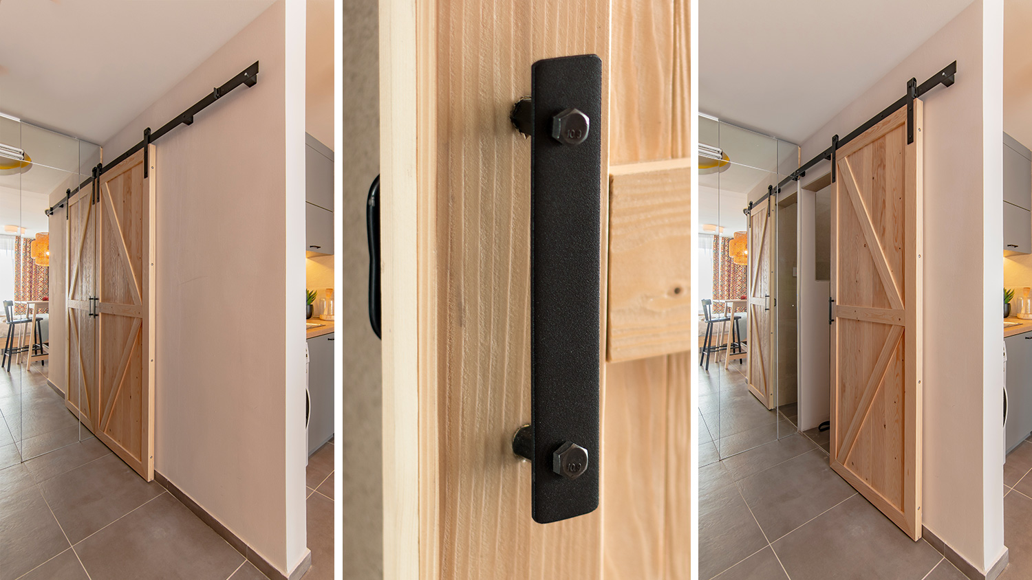 Arhitektica Sonja Brstina je u jednom malom beogradskom stanu za iznajmljivanje iskoristila upravo ova vrata koja ne samo da su dala ton celom enterijeru već su i uštedela puno prostora.