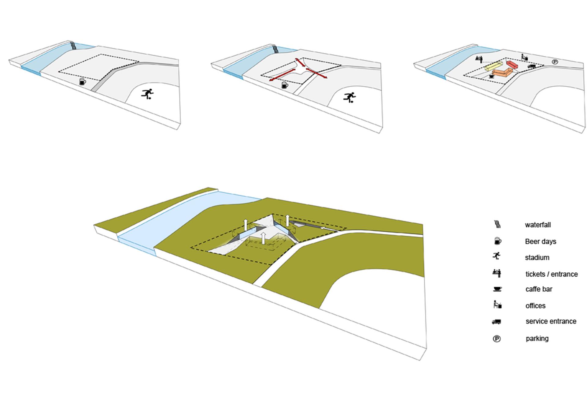 Što se tiče arhitektonskog koncepta, iz 3LHD su ranije objasnili da je cilj projekta bio dobiti novo gradsko žarište na desnoj obali reke, afirmisati šetalište, oblikovati mesto zaustavljanja i turističku atrakciju.