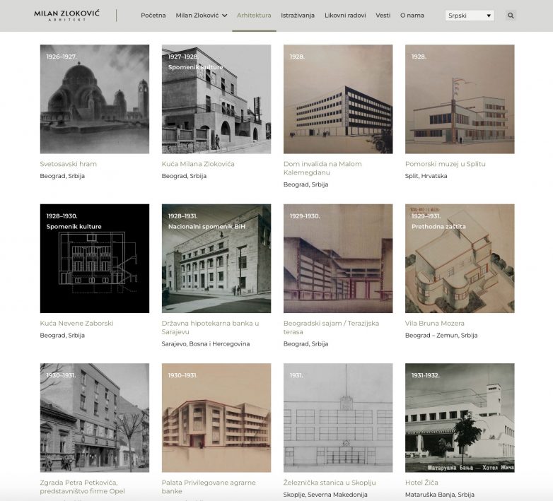 U rubrici Arhitektura prikazan je izbor od 36 najznačajnijih Zlokovićevih projekata iz svih faza njegovog stvaralaštva.