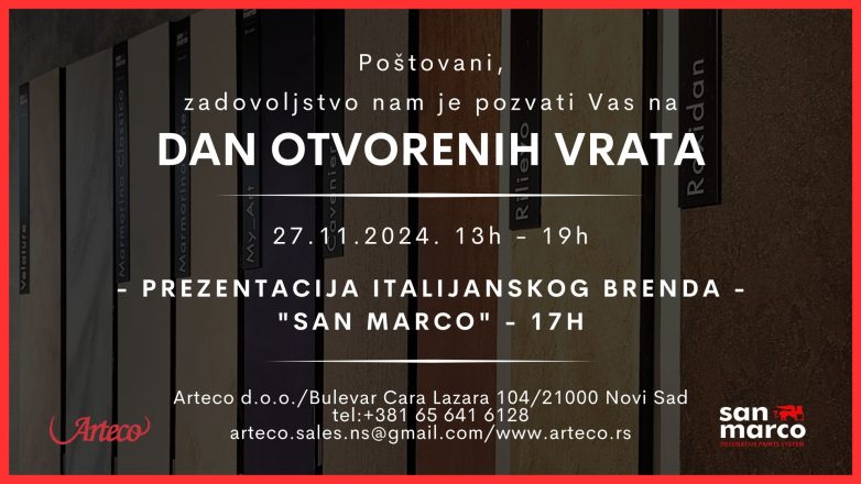 Ovaj događaj pruža idealnu priliku za razmenu ideja i iskustava, kao i za jačanje saradnje sa profesionalcima iz sveta arhitekture i dizajna. Pozivamo vas da nam se pridružite i otkrijete kako uz pomoć ARTECO i San Marco brenda možete podići dizajn prostora na viši nivo.