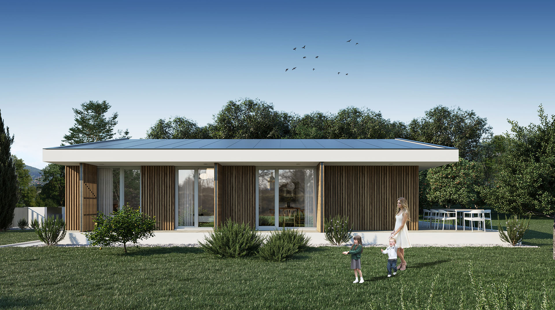 Na krovu kuća se nalazi i solarna elektrana kompanije Solarni. Grejanje i hlađenje objekata rešeno je sistemom toplotnih pumpi – čija je pozicija pažljivo promišljena.