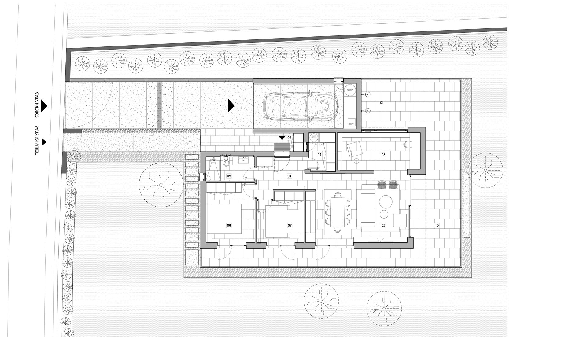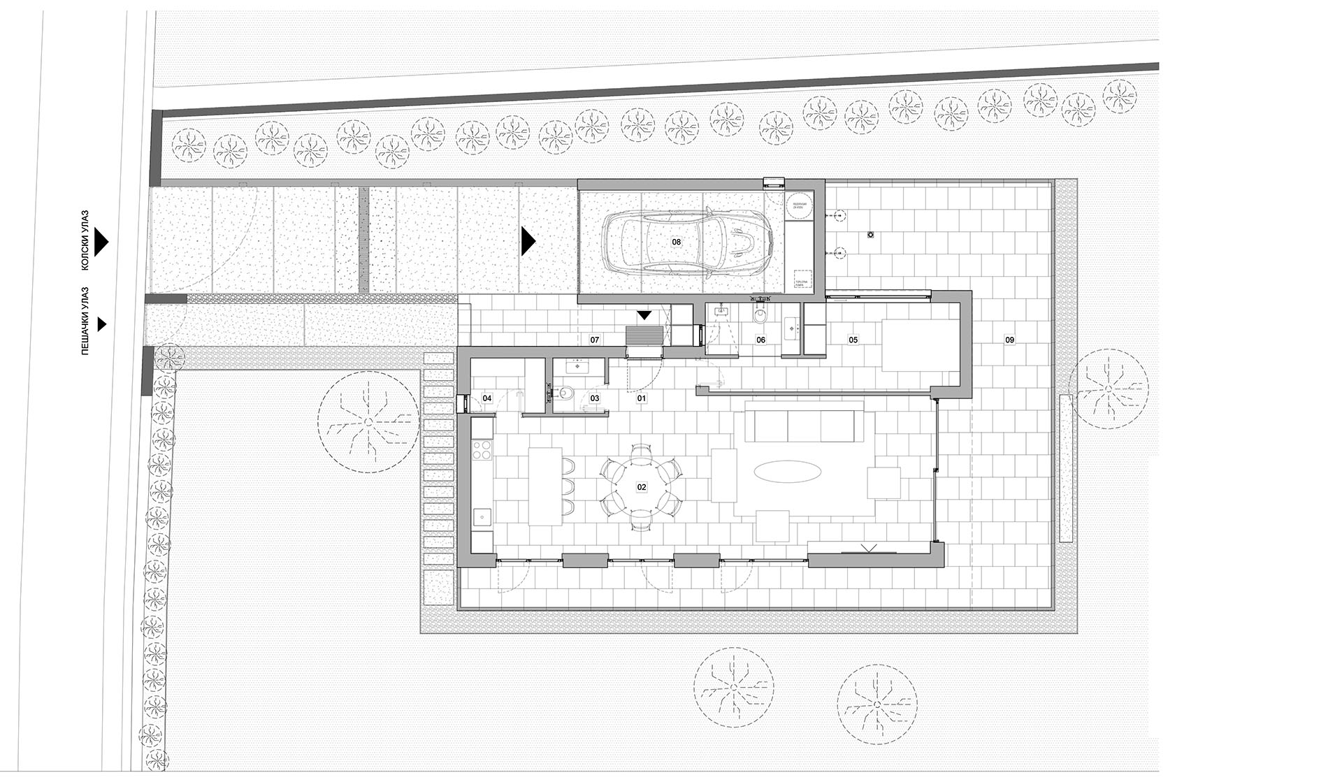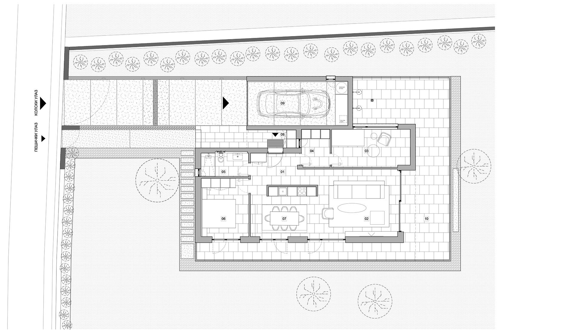 Kako objašnjavaju iz studija Gušić Architecture, koji autorski potpisuje projekat, oblik parcele i topografija terena opredelili su urbanistički sklop susedstva.