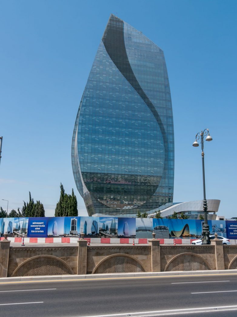 Još jedna zgrada koja pomalo podseća na plamičak, jeste zgrada Azersu, a ako znate azerski ili makar turski, znate da je to „Azerska voda”, odnosno zgrada nacionalnog provajdera vode. Ali, to nije plamičak, već kap vode, zapravo – na pogrešnom ste tragu.