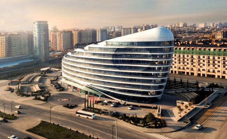 Na prilično praznom novom Bulevaru Hejdara Alijeva, rešeno je da se izradi spektakularna zgrada za nacionalnu kompaniju za gospodarenje vodnim resursima.