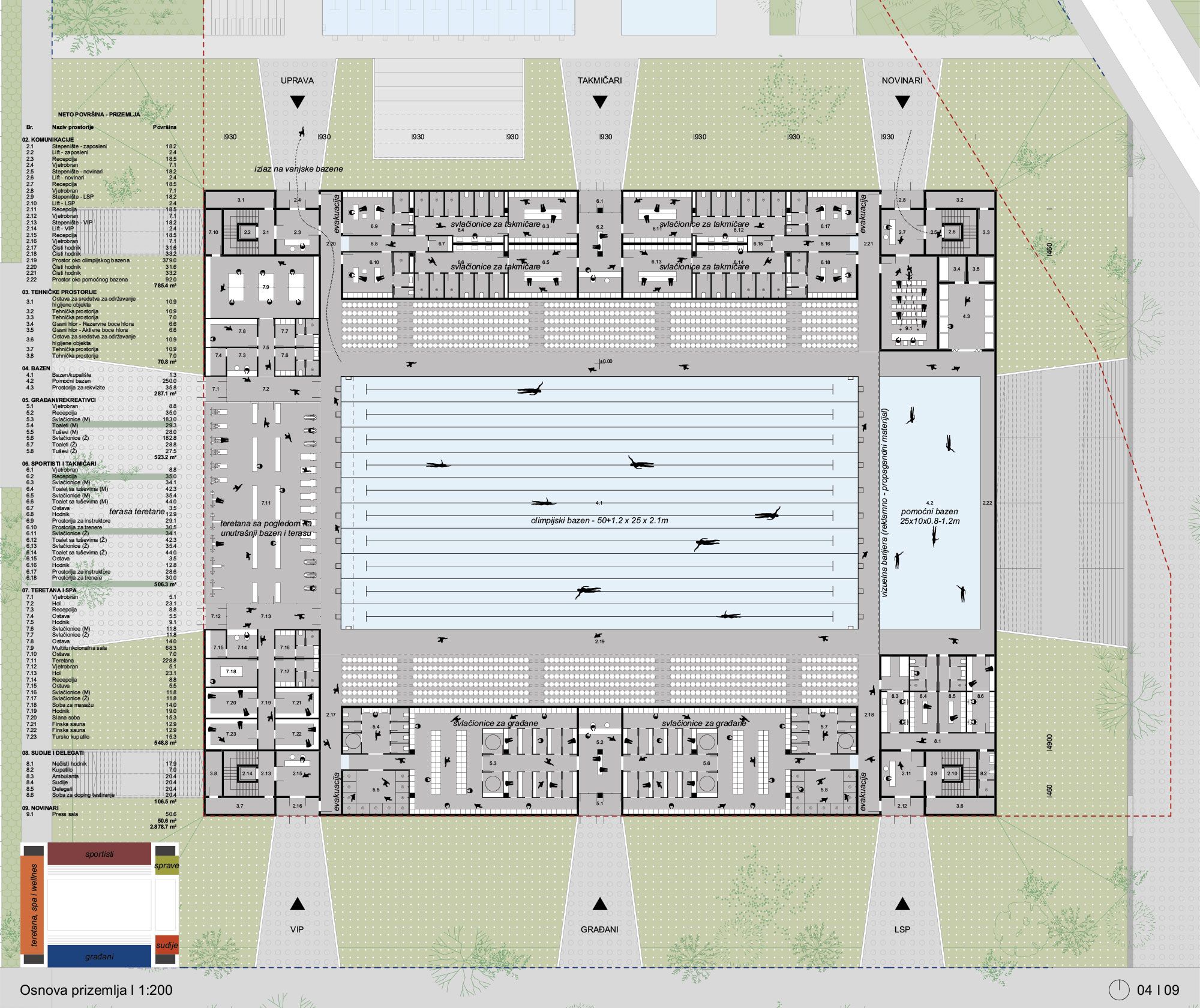 „Vidimo NAC kao levitirajuću krovnu ploču – brod koji usidruje objekat u neposredni kontekst. NAC sadrži zatvoreni i otvoreni olimpijski bazen, zatvoreni mali bazen i otvoreni bazen za skokove. Kapaciteti tribina su 1.700 mesta za zatvoreni bazen i 1.000 mesta za otvoreni bazen“, saopštili su nakon proglašenja pobednici na Instagramu.