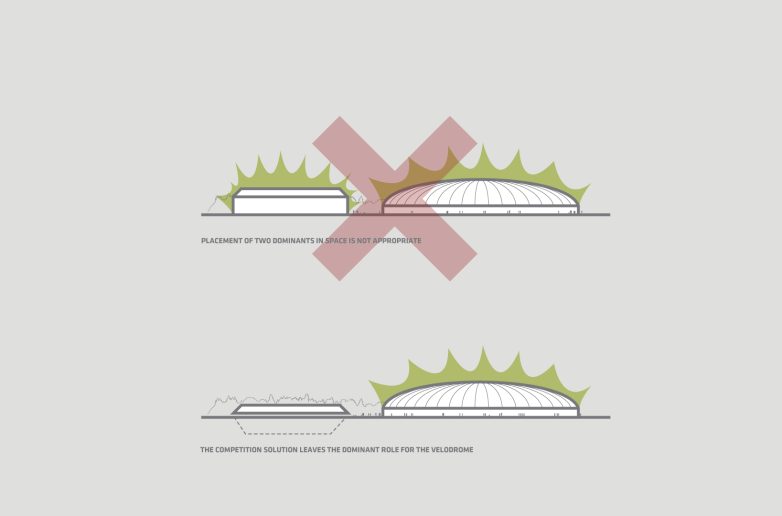 „Novi bazenski objekat koristi prednosti topografskih karakteristika nagnutog terena. Smešten je što je moguće niže i ne predstavlja novu dominantu u prostoru“ – objasnile su arhitekte iz Enote.
