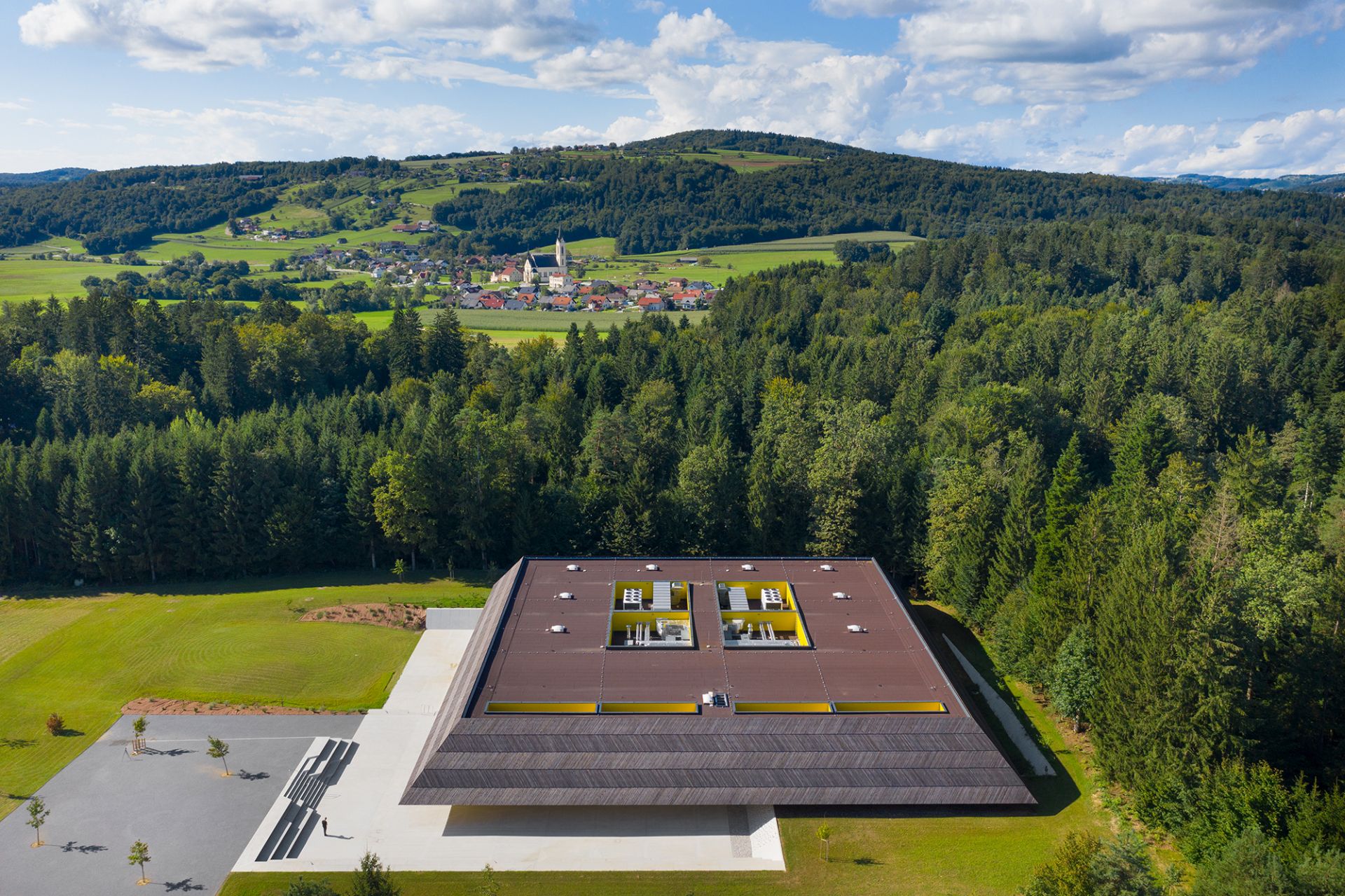 „Zajedno sa nagnutom geometrijom, krov se pojavljuje u prostoru kao parafraza lokalnog ruralnog razvoja“ – navode iz ljubljanskog studija.