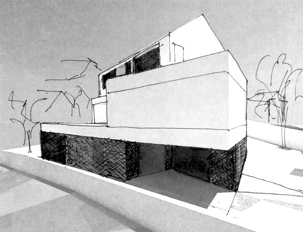 Hlad, sunce, pogled, more, osnovni su elementi iz kojih je ova kuća nastala. Budući da je njen bogat program zahtevao izdašnu površinu, pomiren je s merilom malog mesta rastavljanjem na tri volumena različitih funkcija izmaknuta po vertikali.