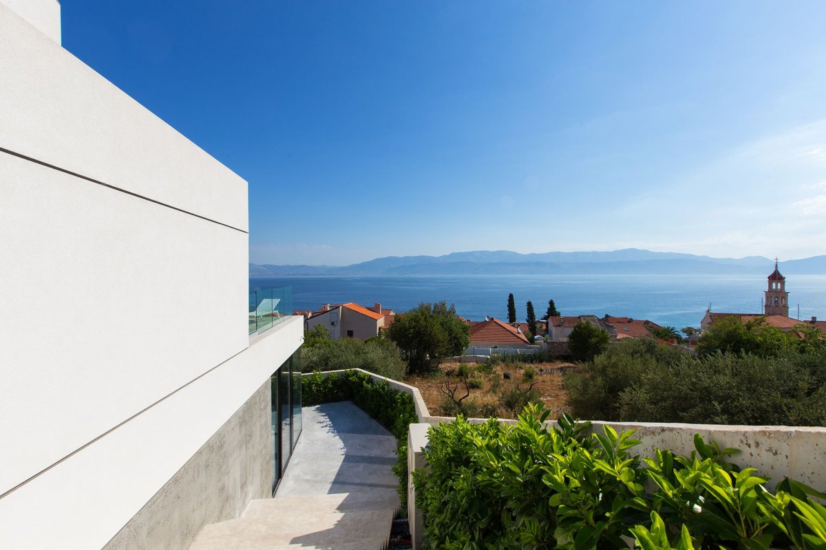 Bela kuća nalazi se u malom mestu Sutivanu na dalmatinskom ostrvu Braču i pripada ciklusu savremenih sutivanskih kuća arhitektonskog biroa Lukšić i Visković.