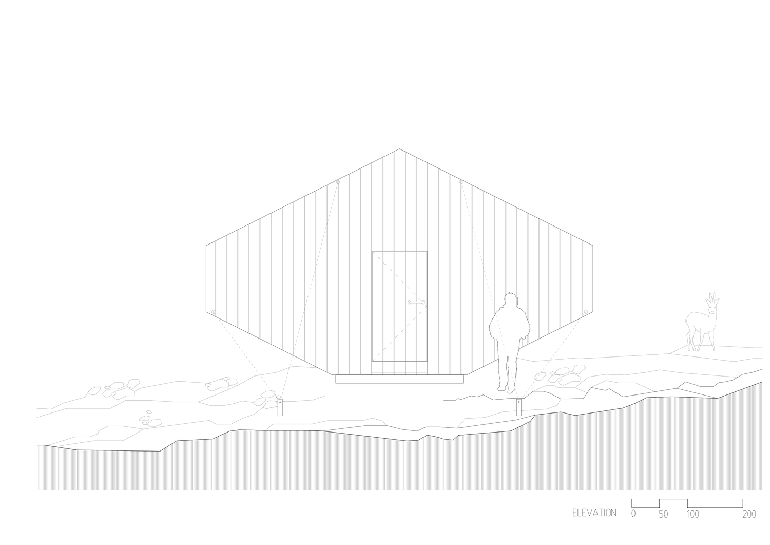 U koncipiranju i razradi projekta pokazala se ključna važnost da su i sami arhitekti iskusni planinari. Spoljašnja forma prati unutrašnji raspored platformi i na taj način minimalizuje otisak na zemlji, čime se iskopavanja na terenu smanjuju na minimum.