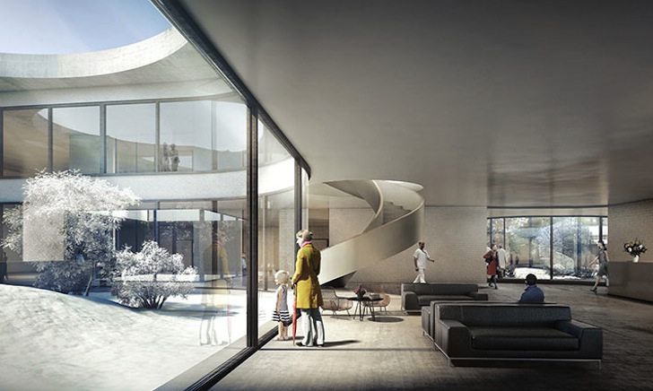 Kako bi pacijente približiti prirodi, arhitekti su osmislili organski dizajniranu bolnicu koja se proteže oko središnjeg dvorišta. Za razliku od tradicionalnih višespratnica, ovaj projekat sastojaće se od niskih volumena koji se protežu kroz prirodu. Komunikacioni putevi ukrštaju se u centralnom dvorištu i povezuju sva odeljenja bolnice na brz i efikasan način, a ogromna zelena bašta na krovu zgrade u potpunosti utapa projekt u okolno zelenilo.