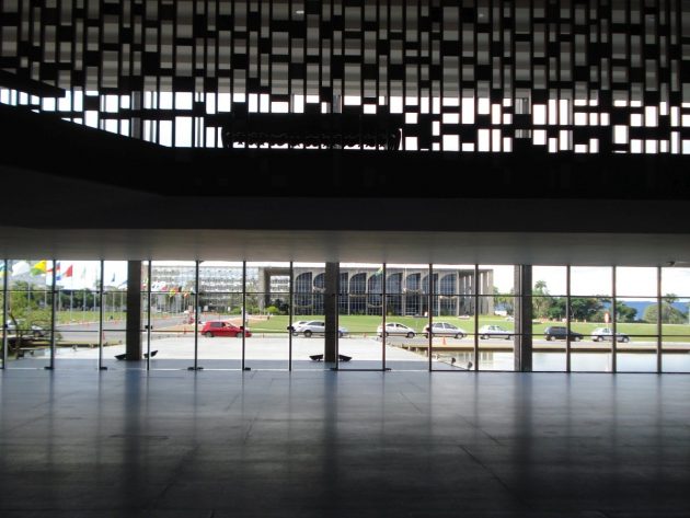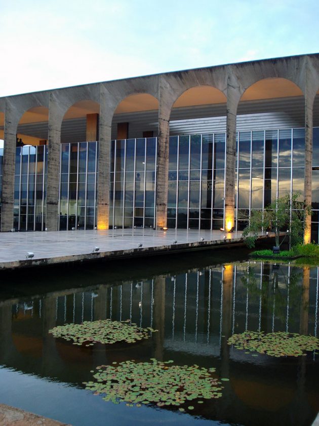 I baš tu, kada sam pomislio da je strogi ritam ministarstava suviše monoton, suviše predvidljiv, pojavila se, ušuškano i nenametljivo, za mene potpuno nepoznata, palata Itamaraty. Fantastičan i neočekivani moderni betonski peristil doneo je novi ritam i novu savršenu proporciju gradu ali i neki šarmanti interpunkt. Njena materijalizacija i kontradiktornost velikog crnog staklenog unutrašnjeg kubusa donosili su interesantnu tenziju. Mogu sa sigurnošću da kažem da je to jedna od najlepših zgrada koje sam ikada video.
