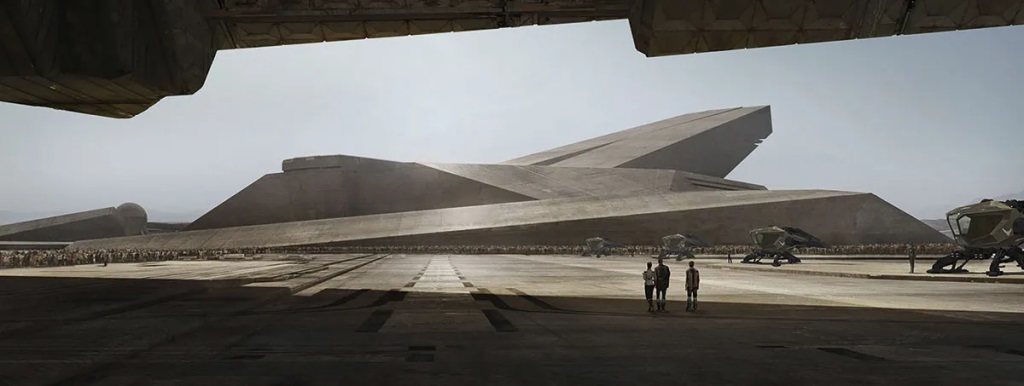 Upravne zgrade (stranci upravljaju Arakisom, te je ovo važno) utelovljuju „zastrašujuću i autoritarnu estetiku” i imaju za cilj da izazovu strahopoštovanje kod Slobodnjaka.