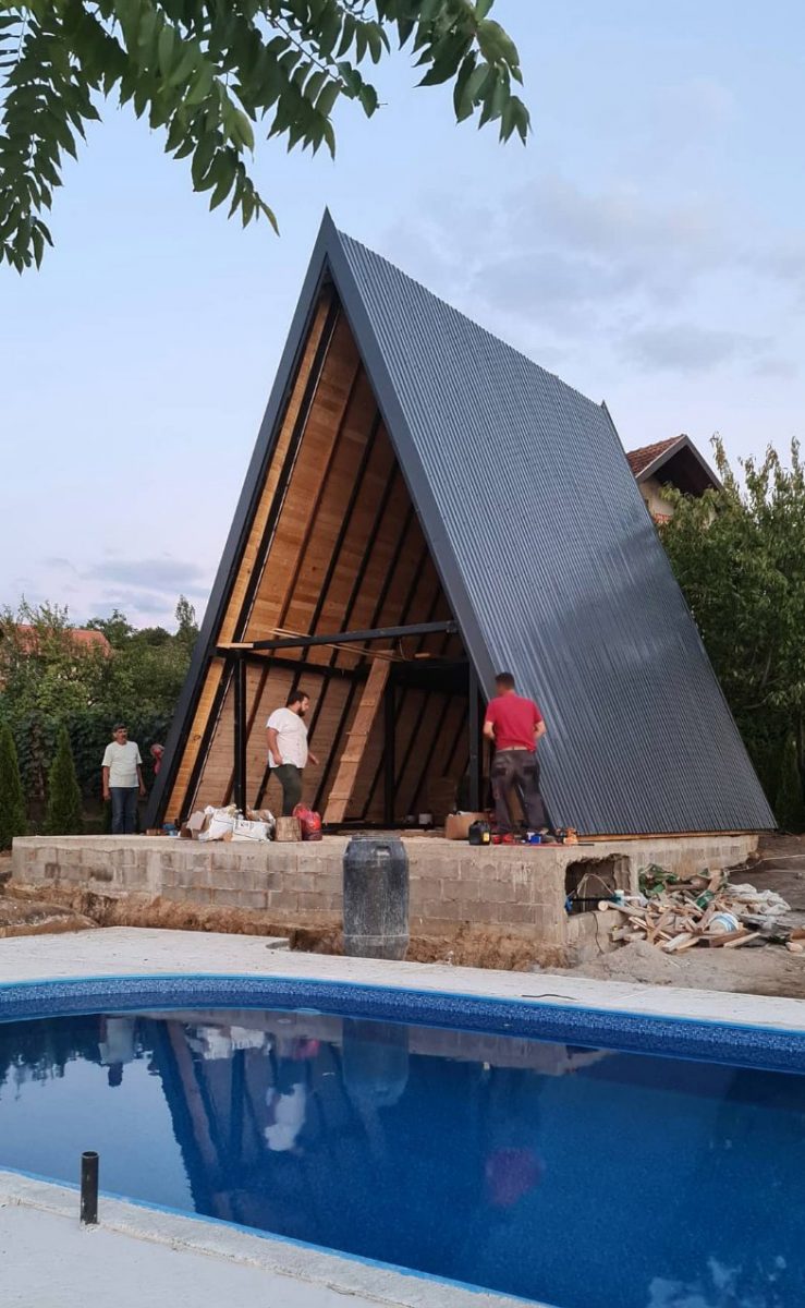 “A-frame” je drveni objekat podignut u Pavlovcu Vrebačkom u Hrvatskoj za klijenta koji je želeo kuću u obliku slova “A”. “Ovaj tip kuće, inače jako popularan na društvenim mrežama, ima veliki nagib krova, a krasi je drveni enterijer i eksterijer”, kaže proizvođač.