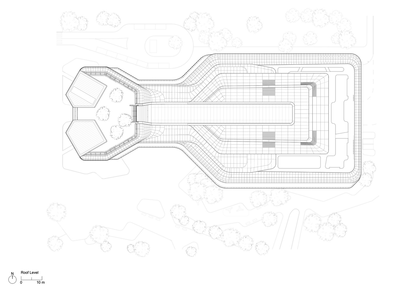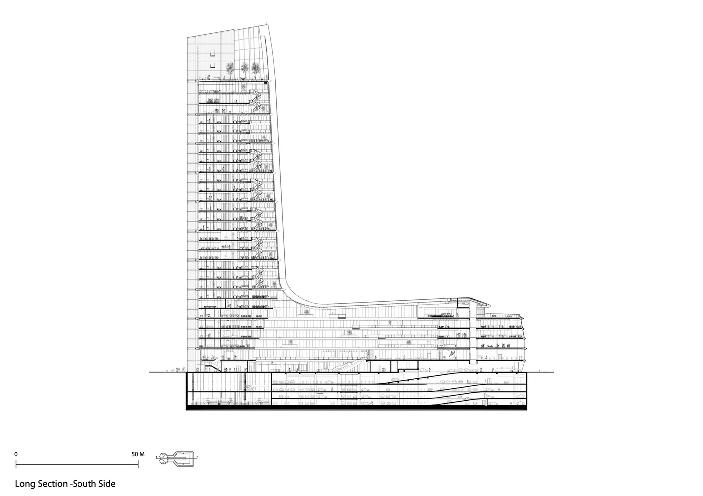 Prepoznatljiv oblik zgrade integriše kulu od 28 spratova s podijumom u jednom obliku kako bi se stvorio jedinstveni kampus.