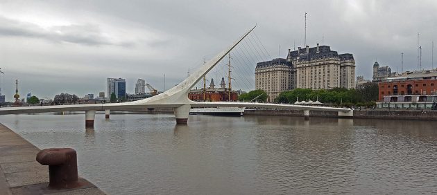 Ukoliko vas interesuje kako će jednog dana izgledati Beograd na vodi, pravac Porto Madero! Ovo luksuzno stambeno-poslovno naselje naslanja se na staro gradsko jezgro i od Plaze de Mayo, centralnog trga Buenos Airesa na kojem je smeštena i Gradska kuća, deli ga 15 minuta hoda i kanal kojeg premošćavaju pet mostova od kojih je najinteresantniji Puente De La Mujer iliti Ženski most iz 2001. godine. Projektovao ga je slavni španski arhitekta Santjago Kalatrava, a inspiraciju za njegov oblik pronašao je u ženskom koraku tanga.
