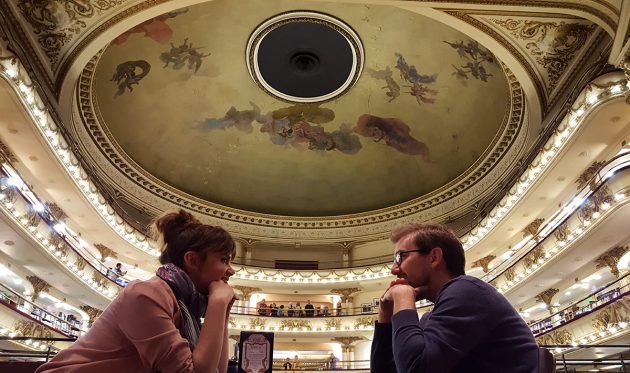 Pošto ste po crnom kursu (16 pezosa za evro) promenili devize na ulici, jer je bankama „upravo nestalo“ domaće valute da vam zamene novac po zvaničnom kursu (22 pesoza za evro), a i retko koji kafić, restoran ili prodavnica prima kartice sa čipom, popili kafu (3 evra!) ili pivo (10 evra za litar!!), vreme je za knjižaru… i to ne bilo kakvu već za El Ateneo Grand Splendid u kvartu Barrio Norte.