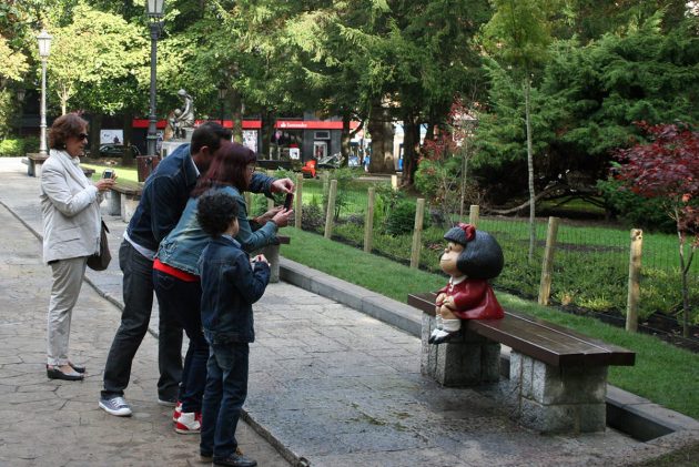 Naravno, pijačna Defensa je pravo mesto za kupovinu suvenira po povoljnim cenama. Turistima su ovde na meti rukavice, čarape i džemperi od lamine vune, nakit od rodohrozita (nacionalnog dragog kamena Argentine ružičaste boje) kao i jastuci, majice i šolje sa motivima Če Gevare, Fride Kalo ili Mafalde najpoznatije junakinje argentinskog stripa kojoj je posvećen trg baš negde na polovine ove živopisne ulice. Figura ova šestogodišnjakinje čekaće vas na klupi da pozira za zajedničku fotografiju ili da sa vama porazgovara o humanosti i miru u svetu – temama koje najviše interesuju ovu ljupku devojčicu.