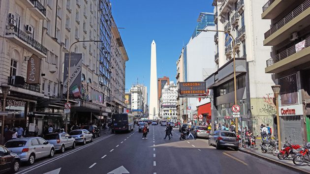 Bljeskajuća svetla Koka-kole, Mekdonaldsa i ostalih svetskih brendova na bilbordima okačenih na fasade zgrada nagoveštavaju da se približavate nečemu bitnom. Ako uspete da otrgnete pogled od ovih agresivnih reklama i pogledate u nebo, videćete glavno obeležje grada dobrog vetra: beli kameni Obelisk visok 67 metara. Dobrodošli u Buenos Aires!
