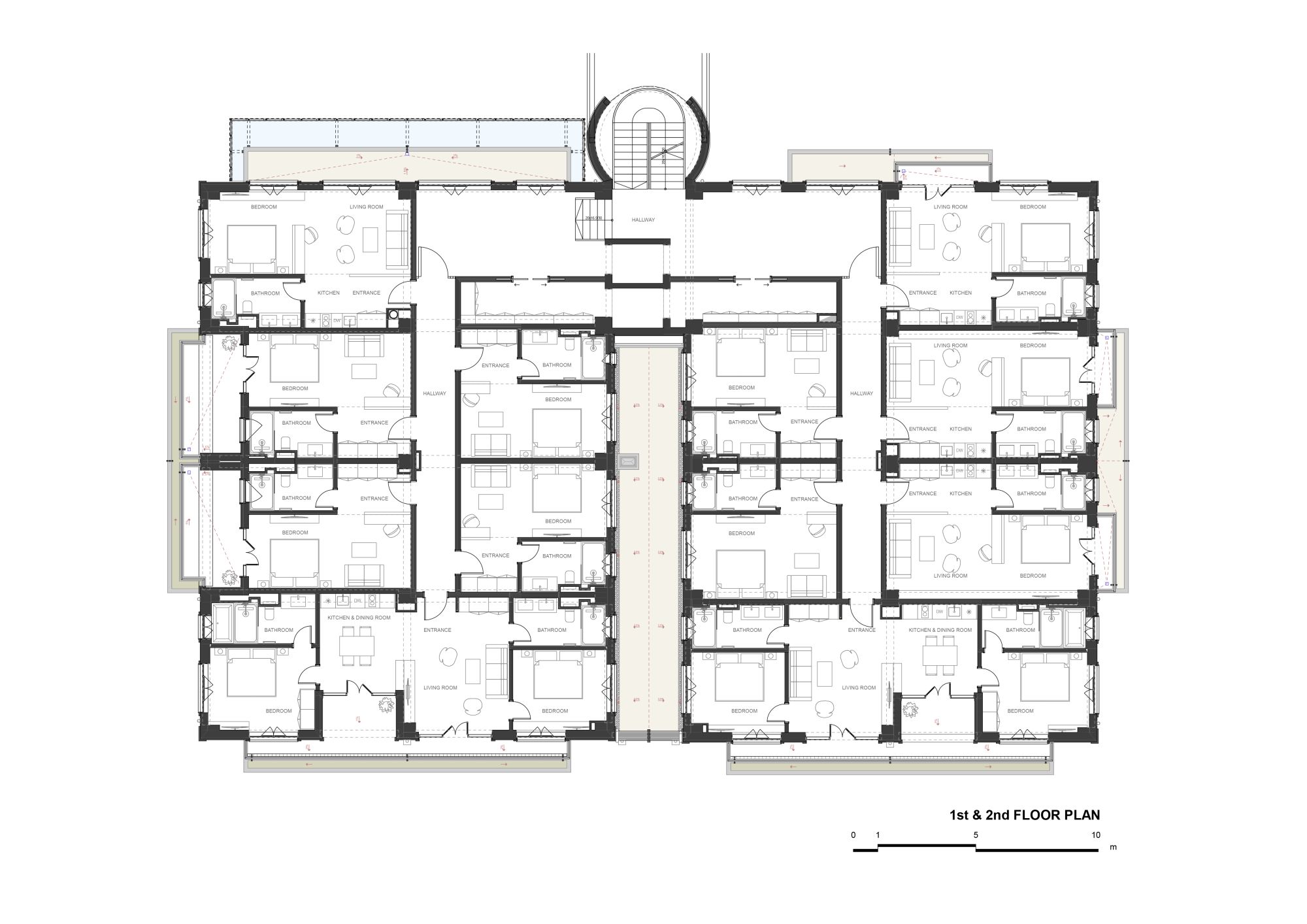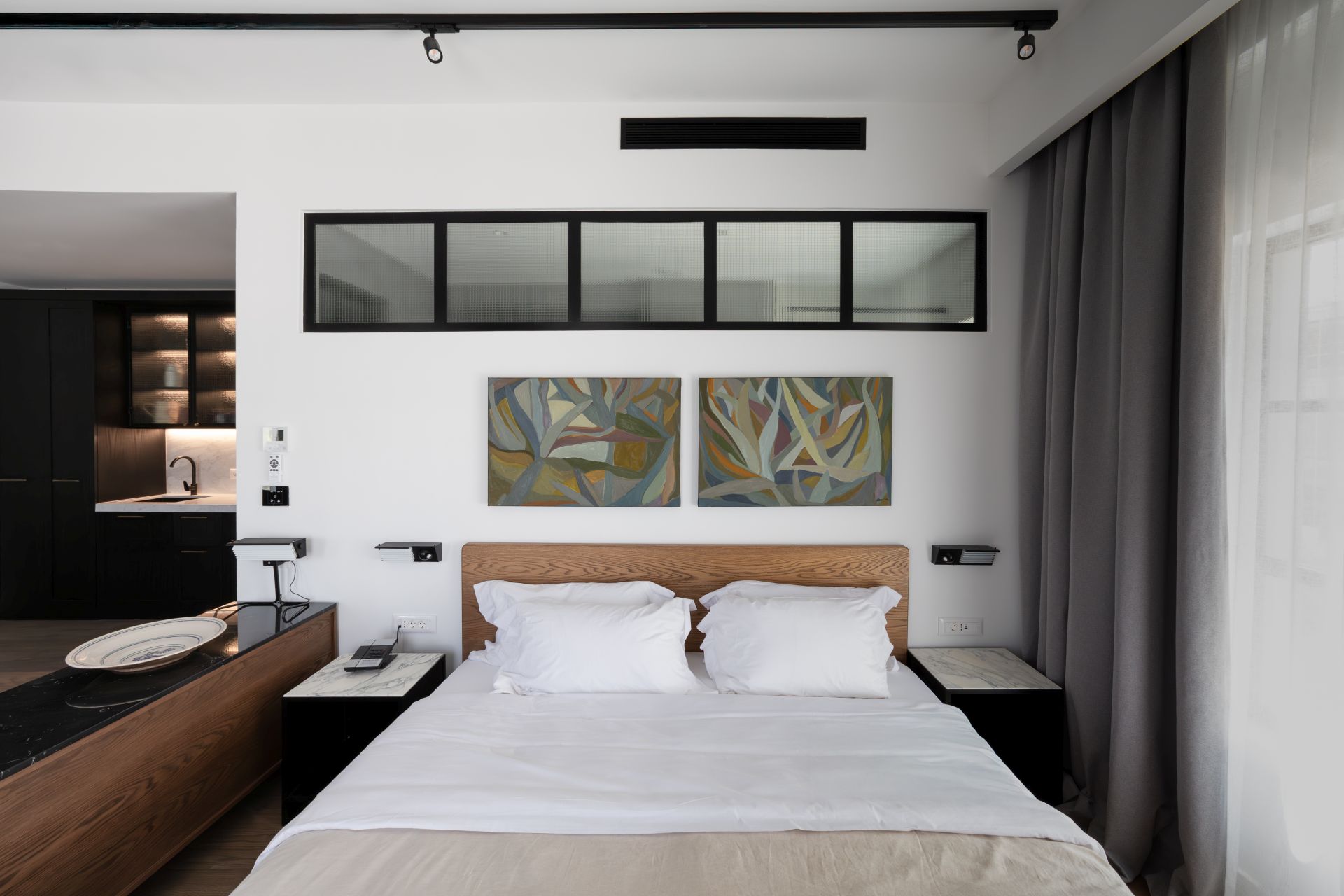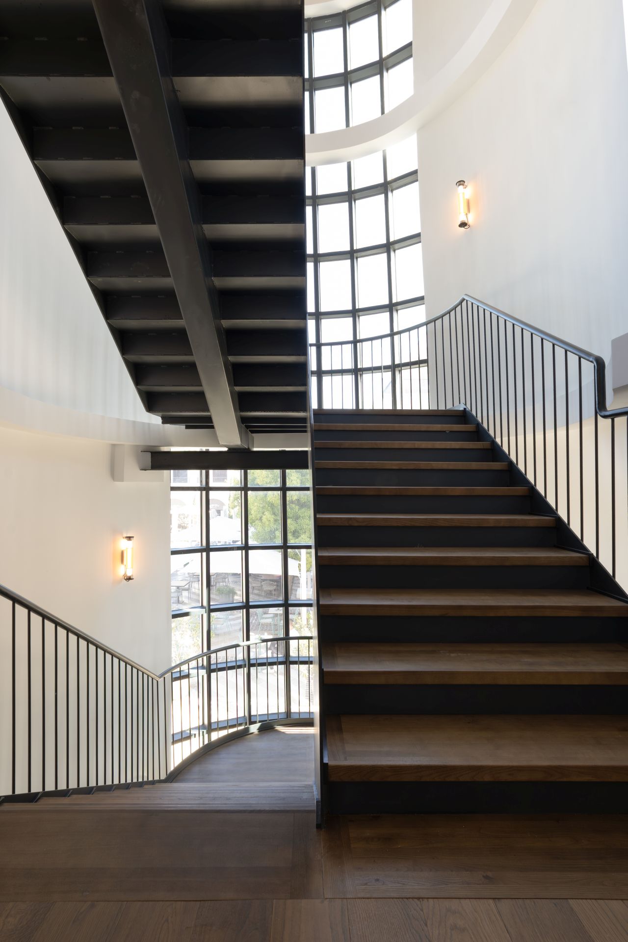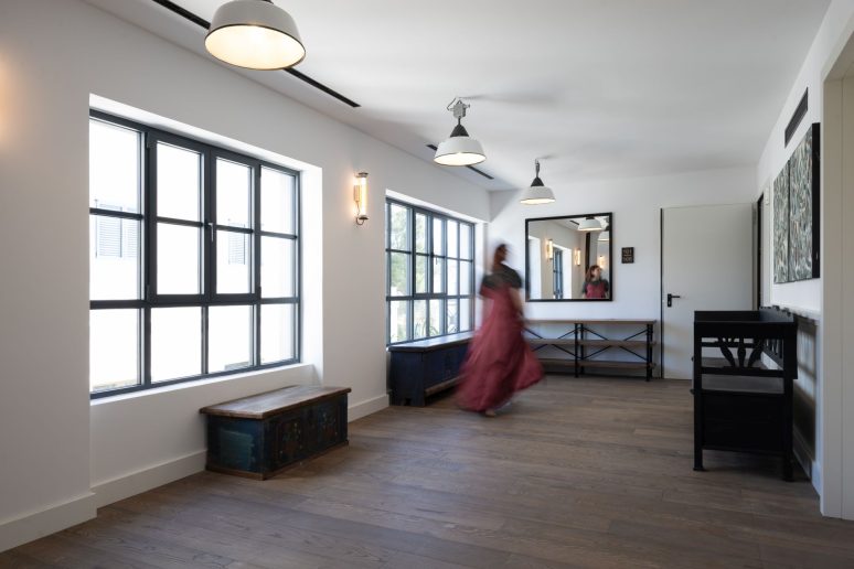 U enterijeru, javne zone zadržavaju sirovi karakter sa izloženim betonom, dok su podovi kombinacija terakote i parketa.