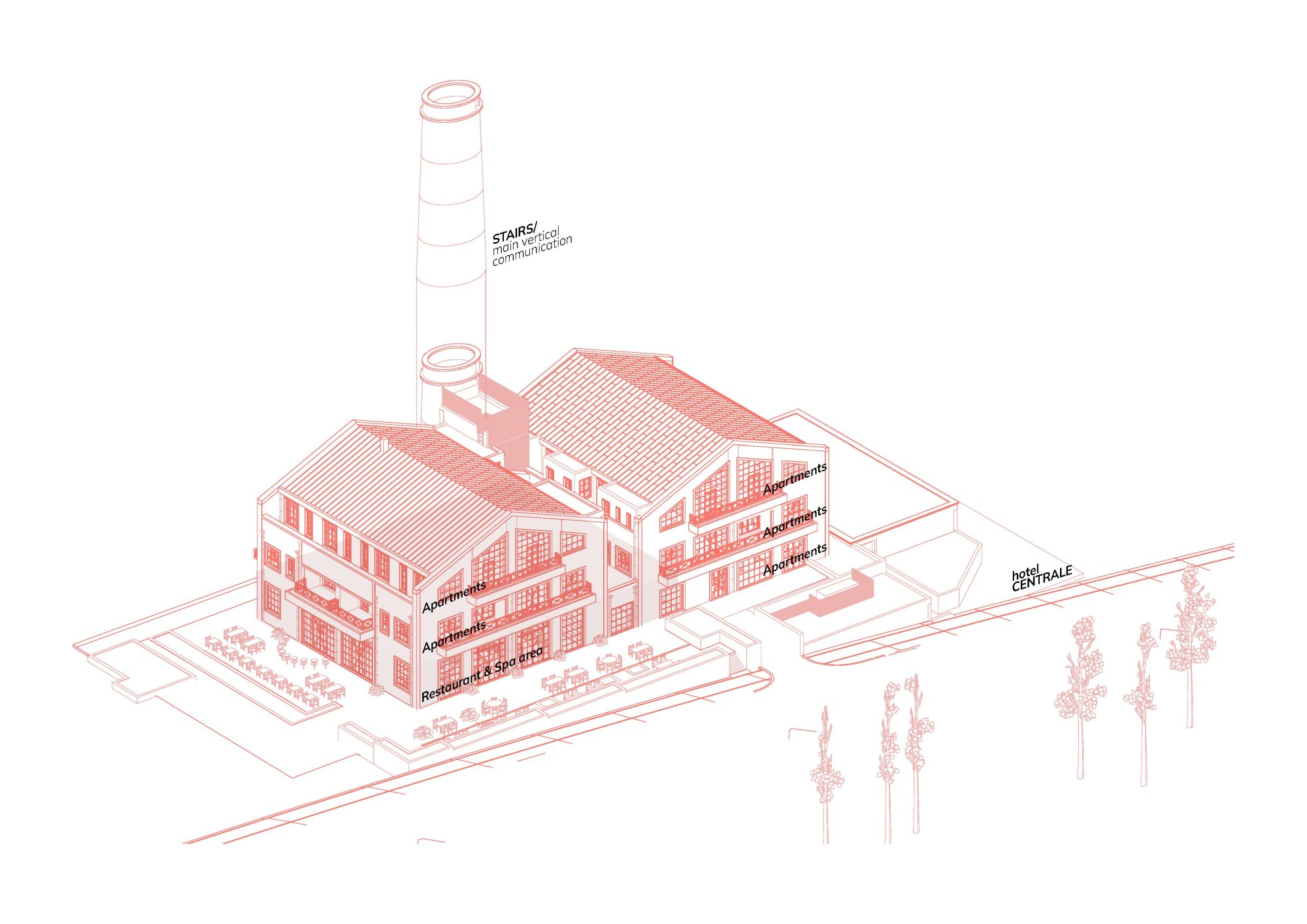 Projekat je zasnovan na očuvanju postojeće konstrukcije i njenoj transformaciji u savremeni butik hotel koji spaja industrijsko nasleđe i luksuznu ugostiteljsku ponudu.