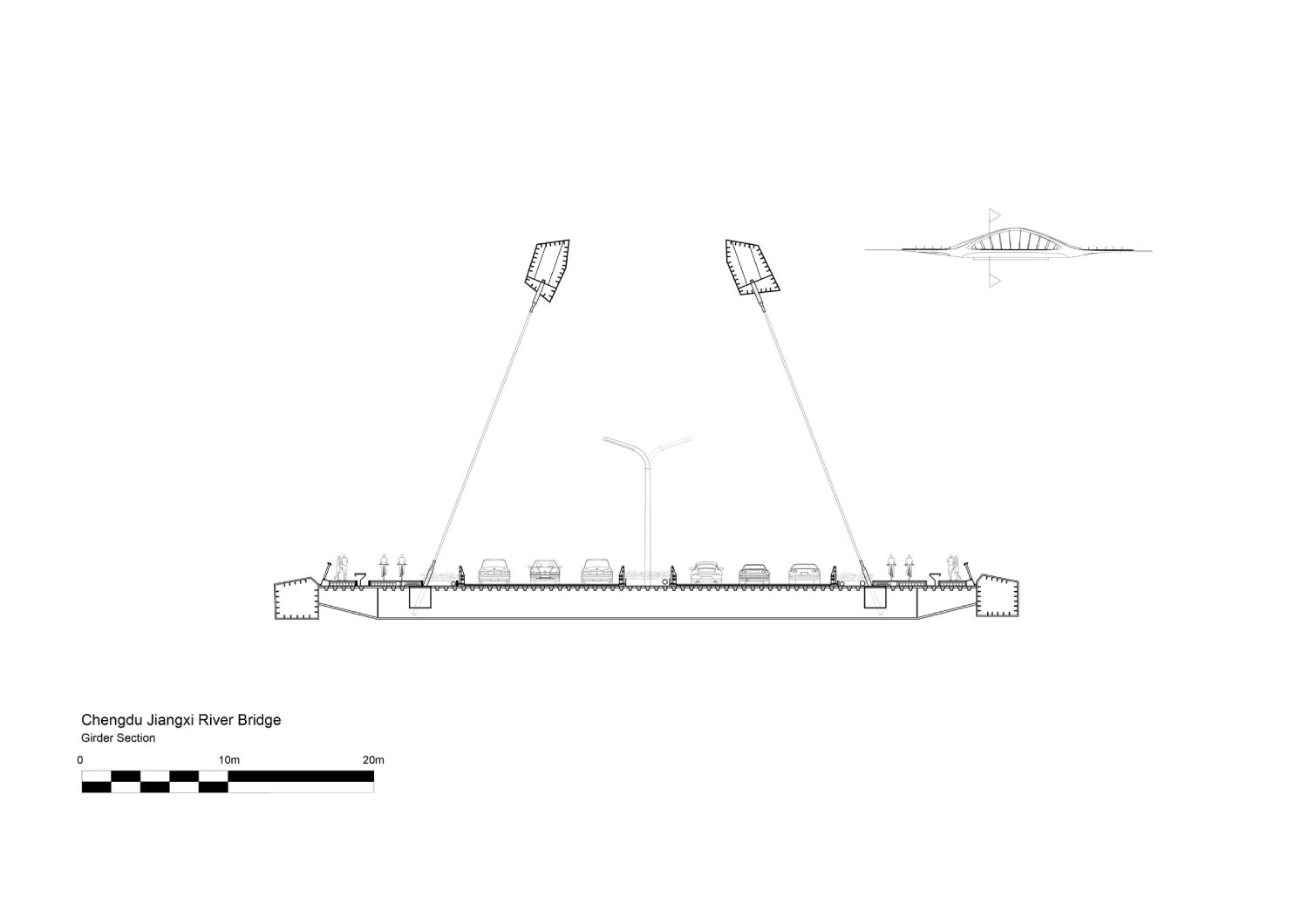 Trup mosta je napravljen od prefabrikovanih betonskih panela, a njegove ivice su obložene kutijastim nosačima projektovanim tako da izdrže spoljne sile lukova, dok istovremeno smanjuju opterećenje na betonskim temeljima.