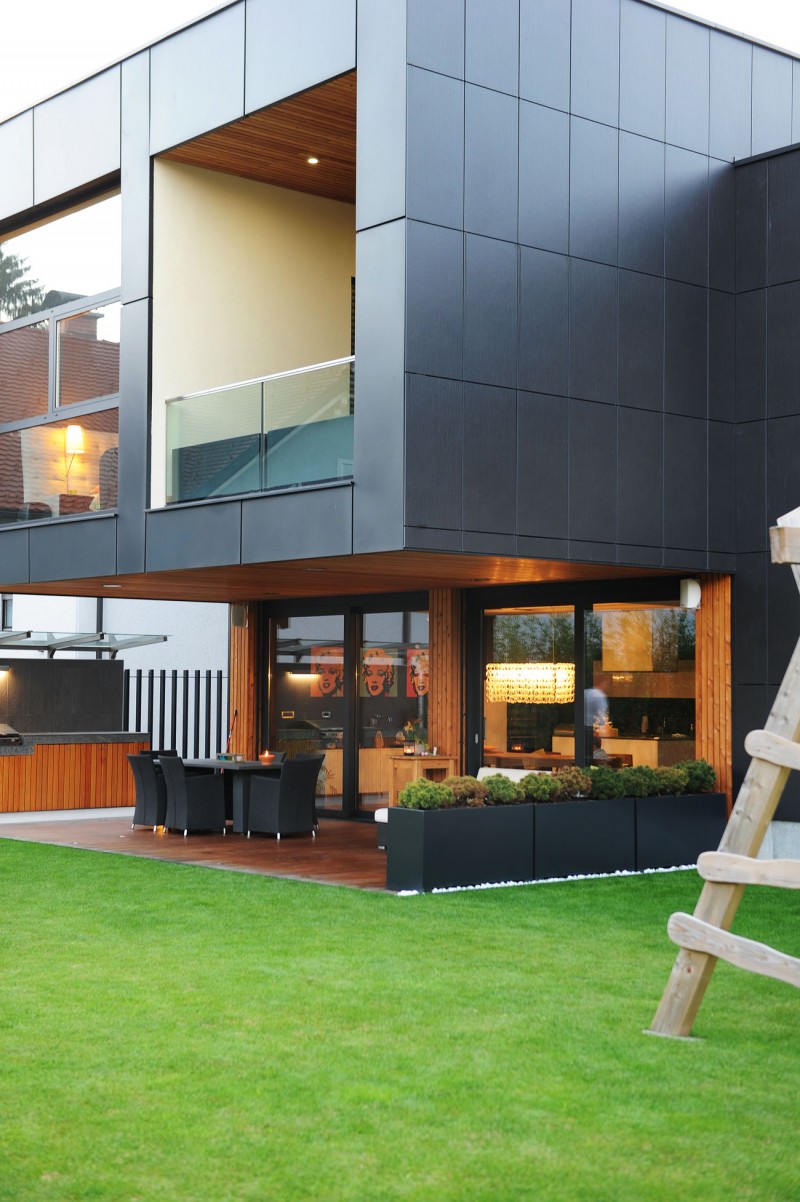 Arhitekta Primož Novak zajedno s firmom Demšar arhitekti d.o.o. potpisuje projektaj porodične kuće u prestonici Slovenije. Vilu koju krasi ventilirajuća fasada u crnoj boji ali i velike staklene površine za prozore, vrata i balustrade. Kao kontrast koji utopljava hladnu konstukciju, iskorišćeno je drvo koje se prostire po podu kao deking ali i na plafonima i na zidovima kao prirodna obloga.
