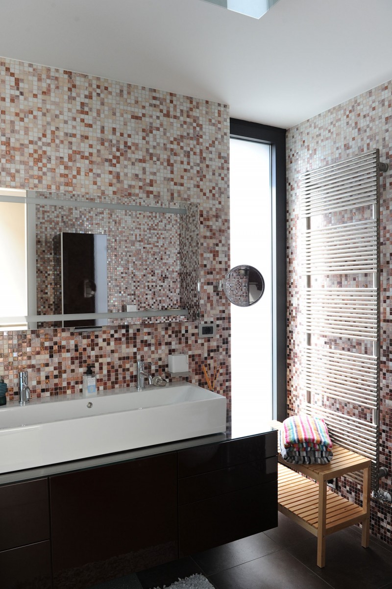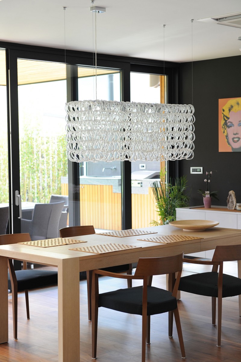 Enterijer karakteriše moderna harmonija neutralnih tonova, obilje drveta i stakla. Dok je u open-space prizemlju smeštena dnevna soba s trpezarijom i kuhinjom na spratu se nalazi miri deo kuće sa spavaćim sobama.
