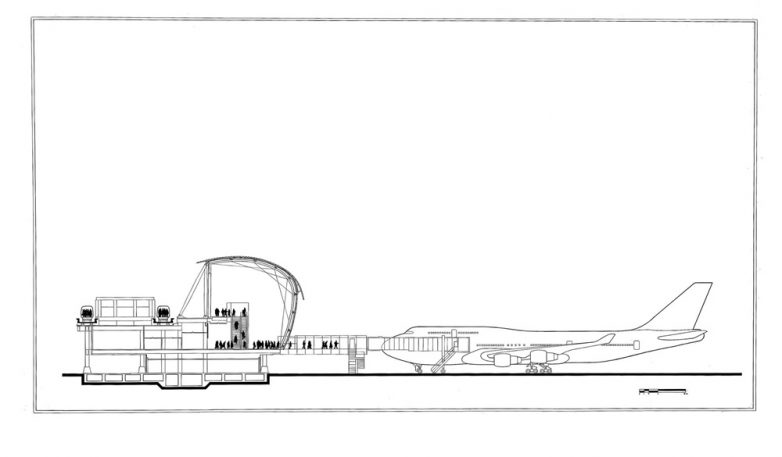 Osnovni radovi na ovom projektu, odnosno izgradnja veštačkog ostrva započeta je 1987. godine, samo godinu dana nakon što je Pjanova radionica osvojila konkurs za izgradnju aerodroma u ovoj oblasti.
