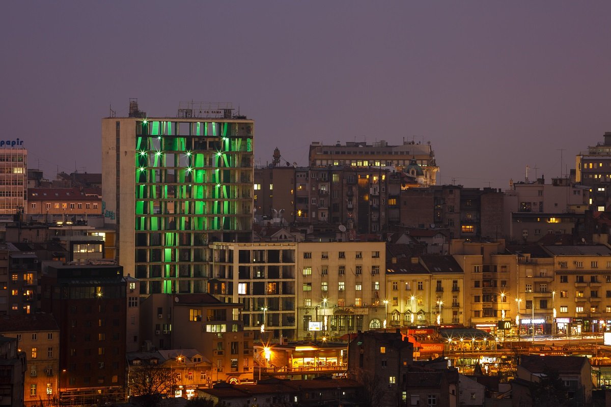 Svetlosna instalacija Biotop vidljiva je u večernjoj silueti grada i simbolizuje novi talas zelene arhitekture, koju je, nedavno završenim nacionalnim arhitektonskim konkursima, pokretuo Stattwerk. Ova nemačko-srpska arhitektonska firma, realizovaće projekat prvog zelenog, energetski efikasnog solitera na Zelenom vencu. Pobedniča rešenja možete videti ovde.