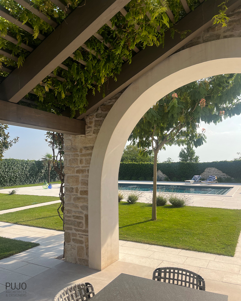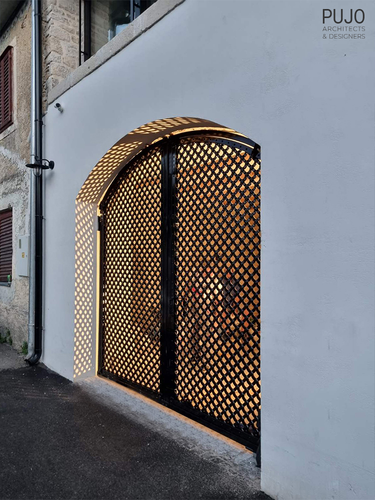 „Ovaj kameni luk postaje čvrst geometrijski ram za ručno rađenu kapiju od kovanog gvožđa i akcenat na strogom uličnom frontu. Tek prolaskom kroz ovaj portal nazire se život unutrašnjeg dvorišta“ – objašnjavaju iz Pujo A&D.